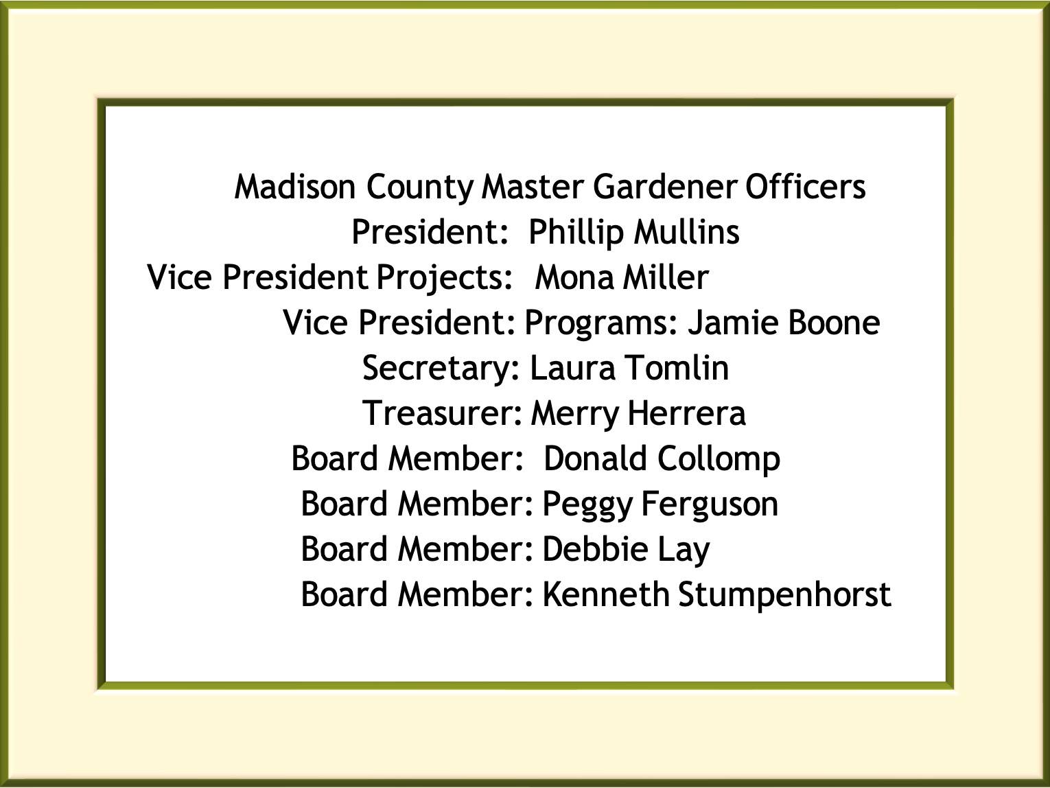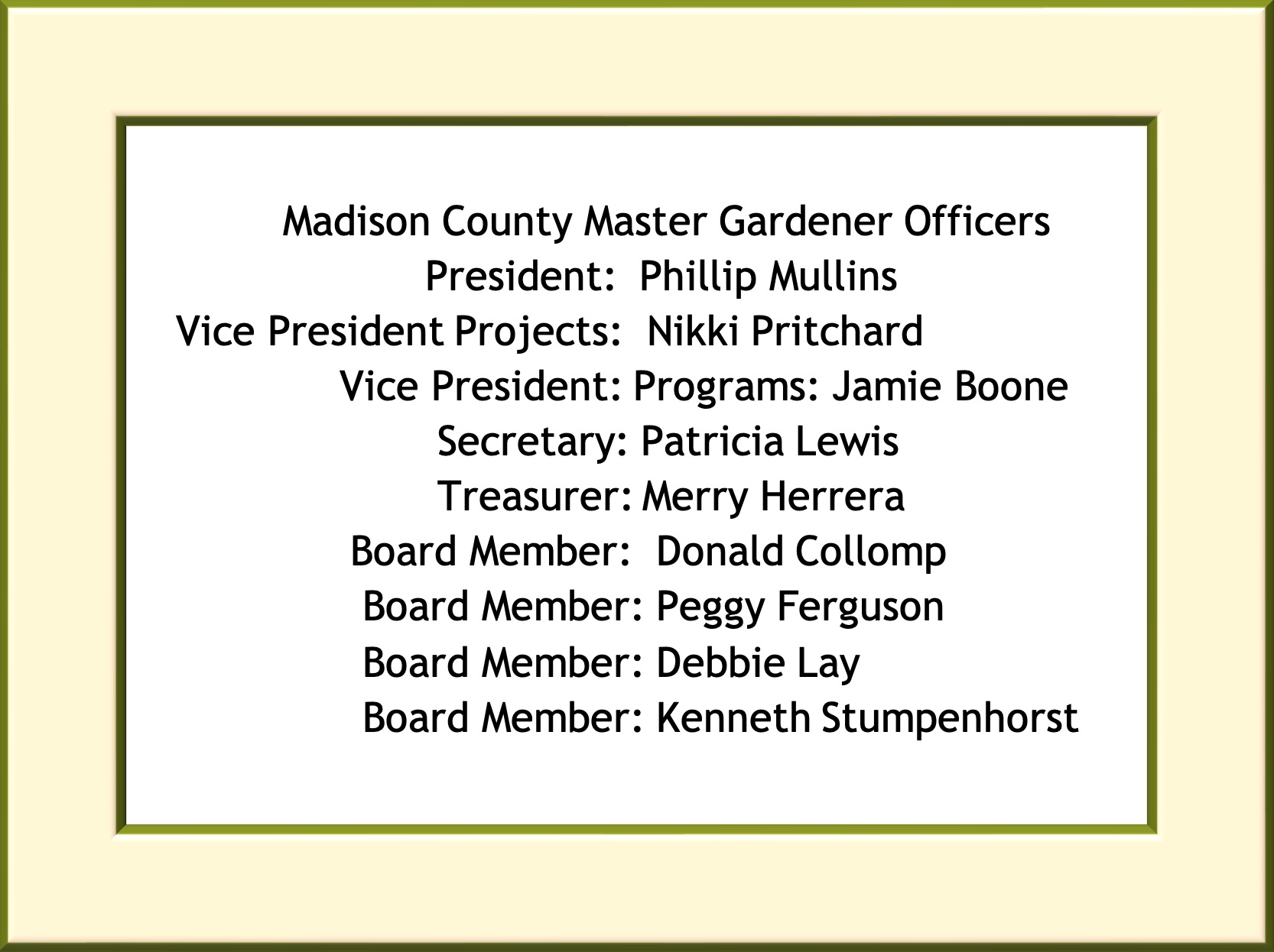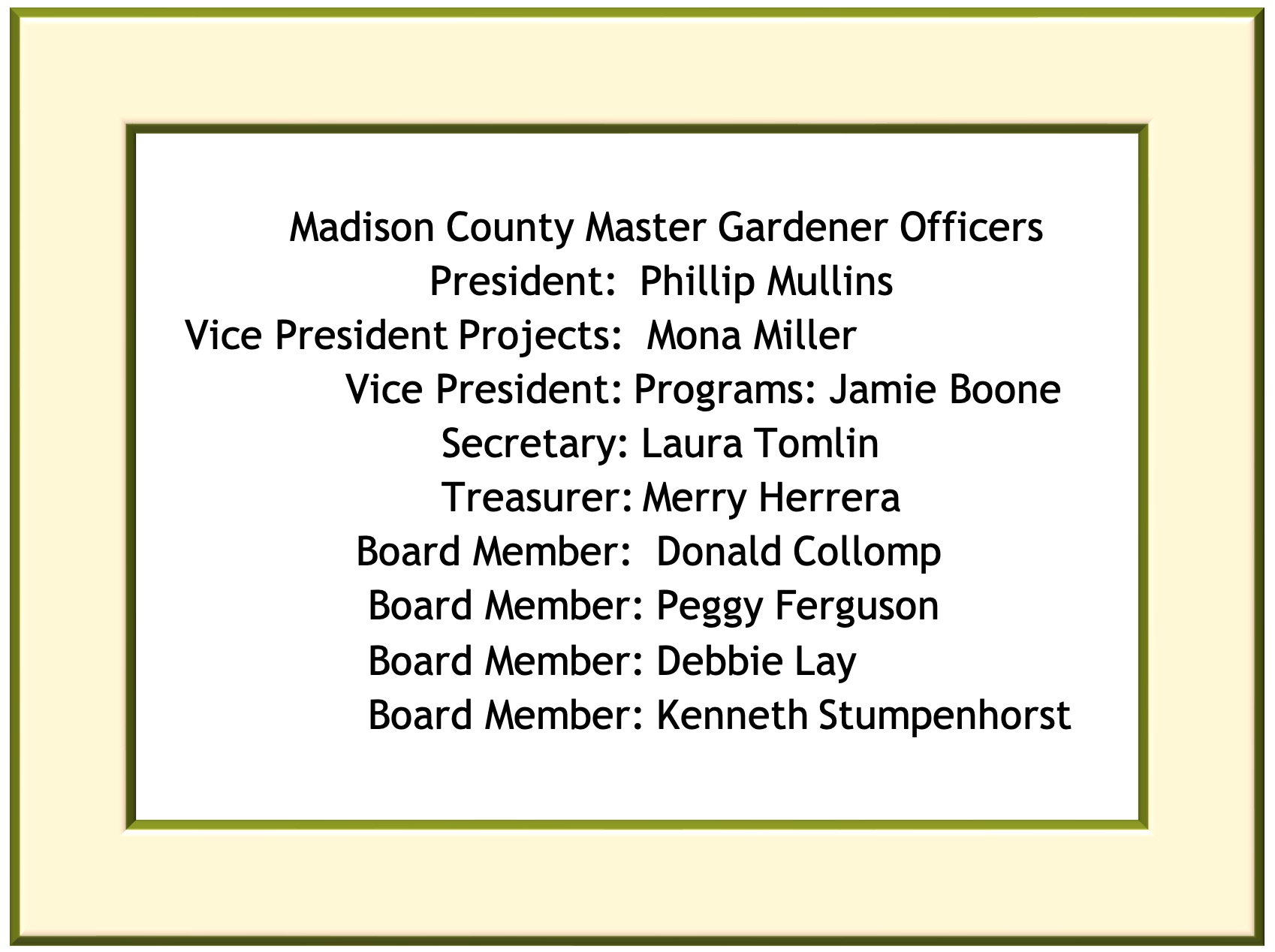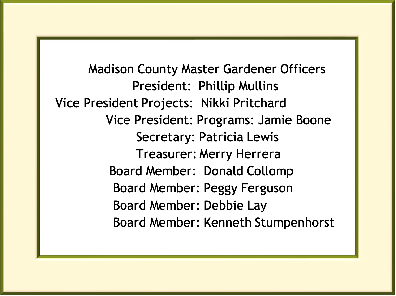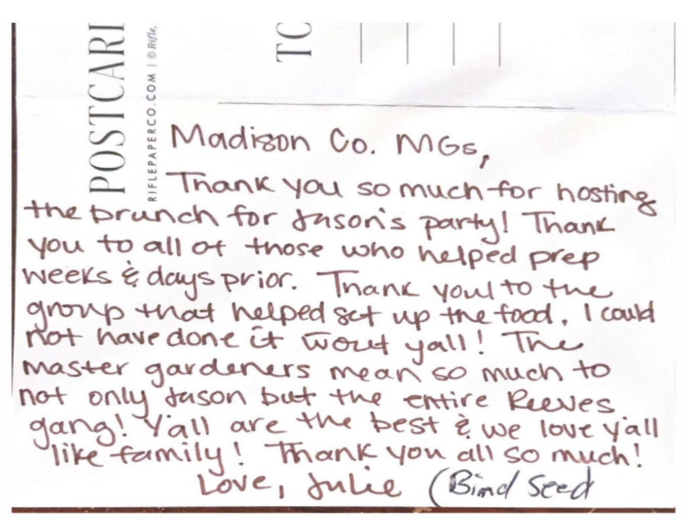 THANK YOU NOTES TO THE MADISON COUNTY MASTER GARDENERS