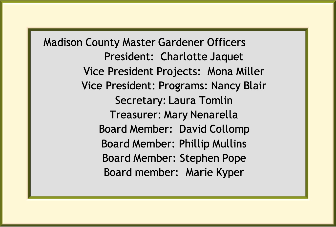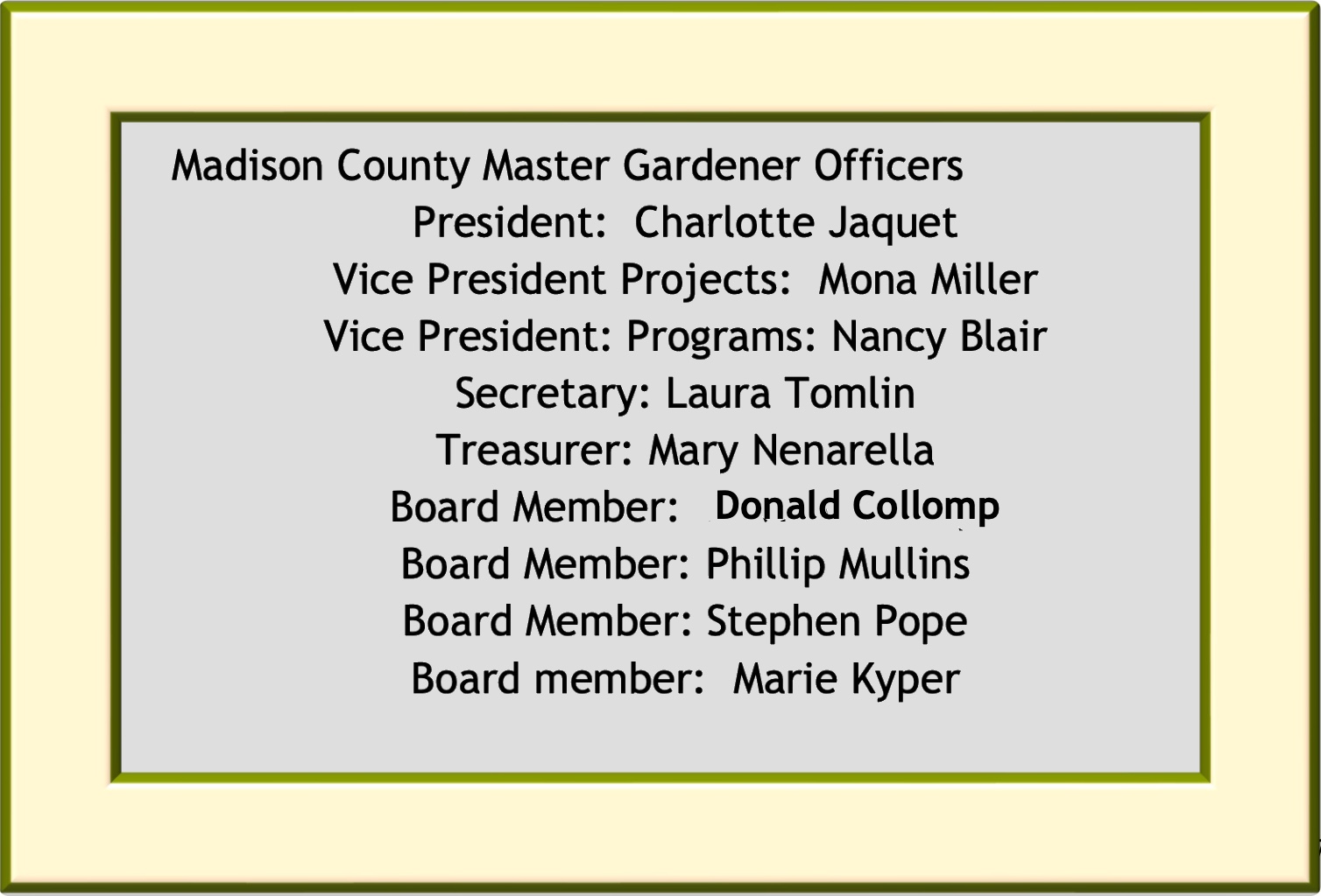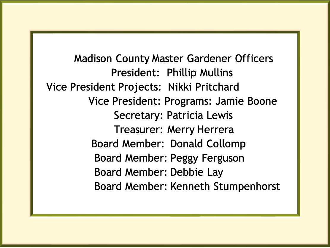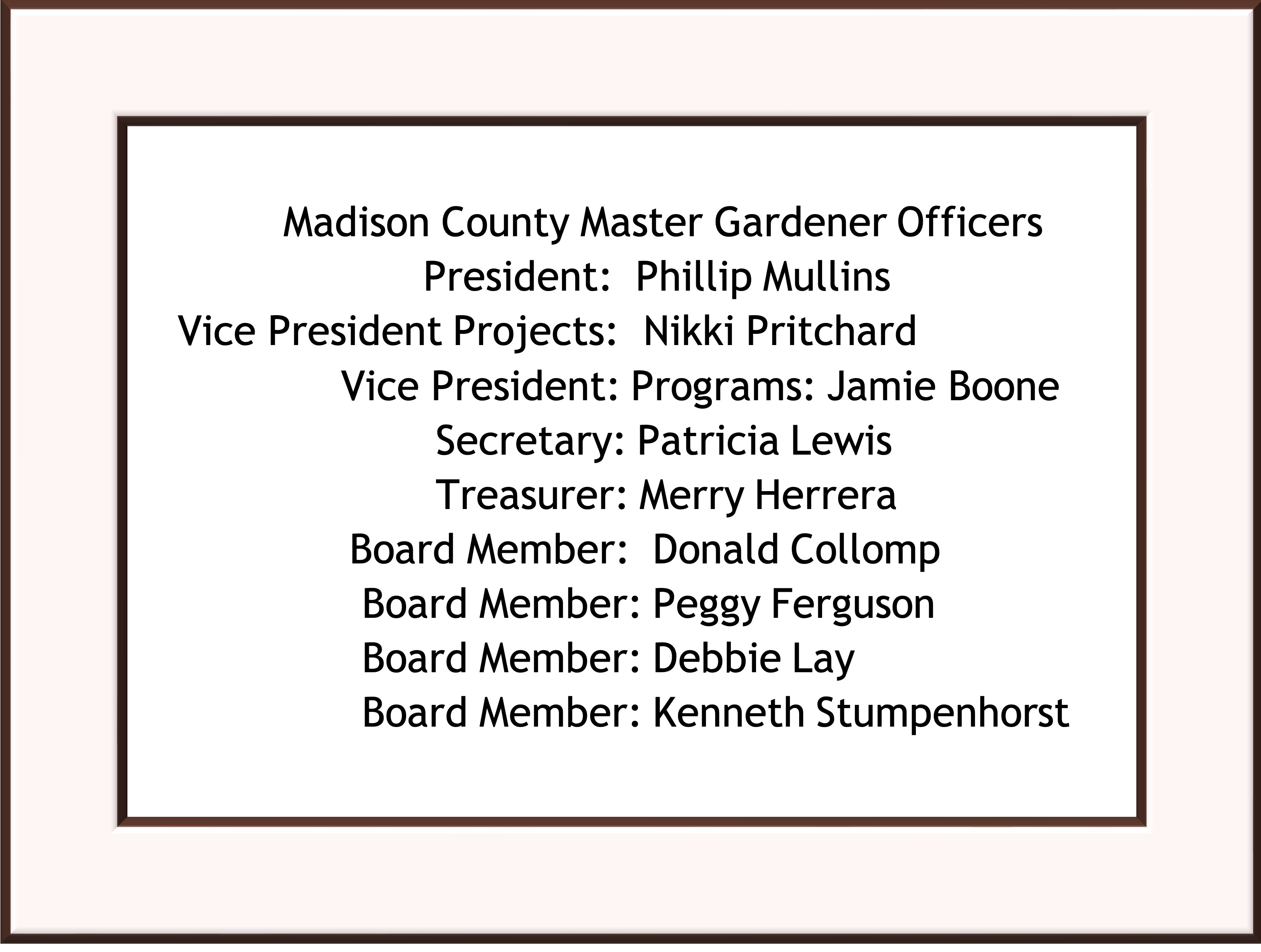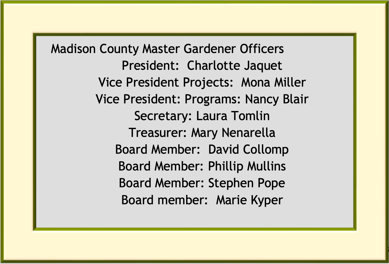 THANK YOU NOTES TO THE MADISON COUNTY MASTER GARDENERS