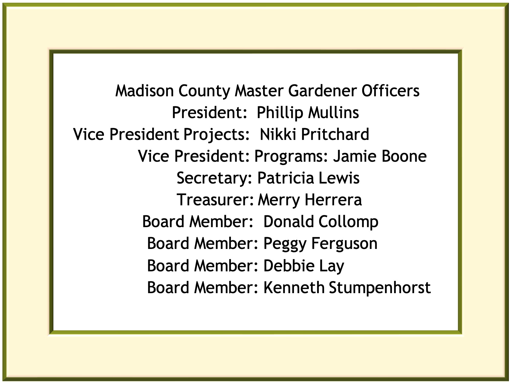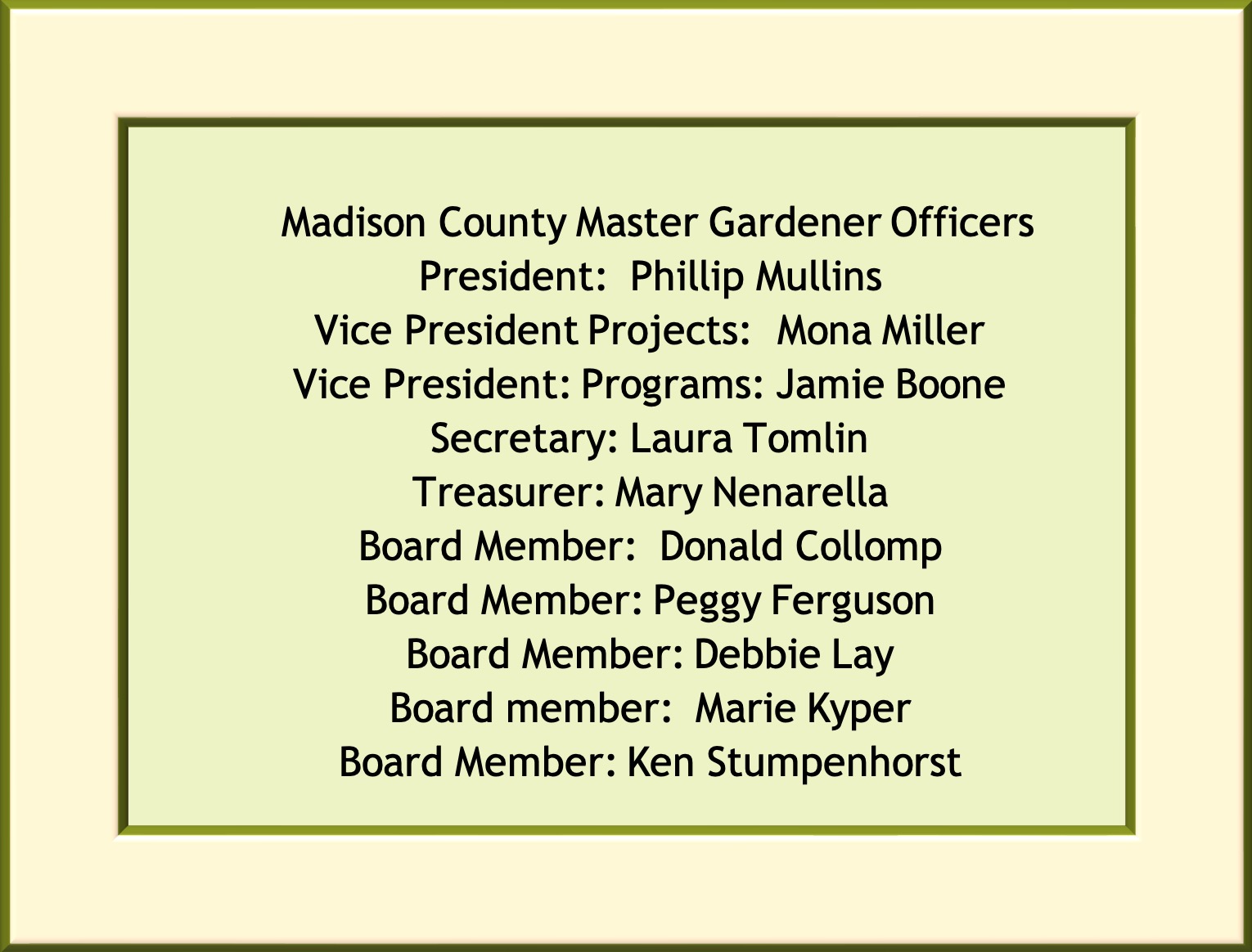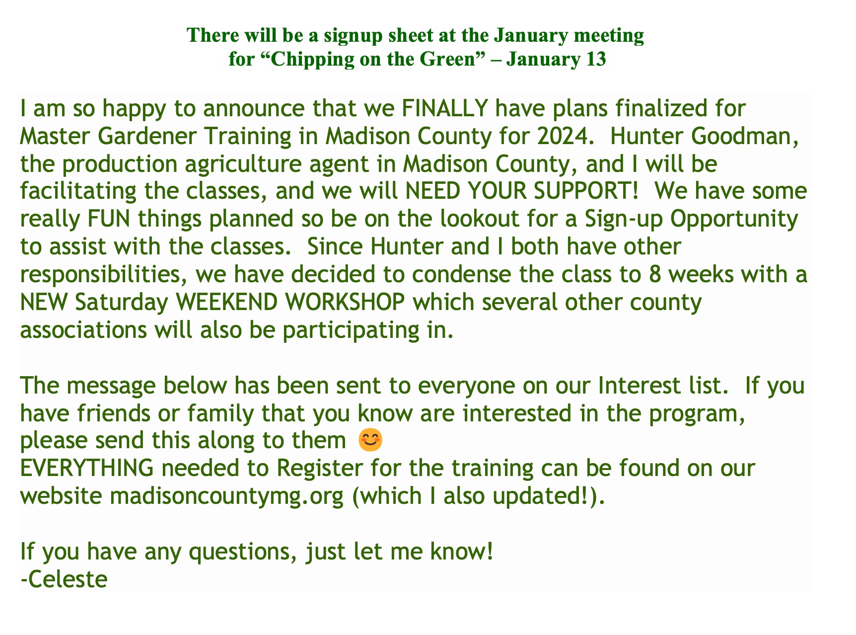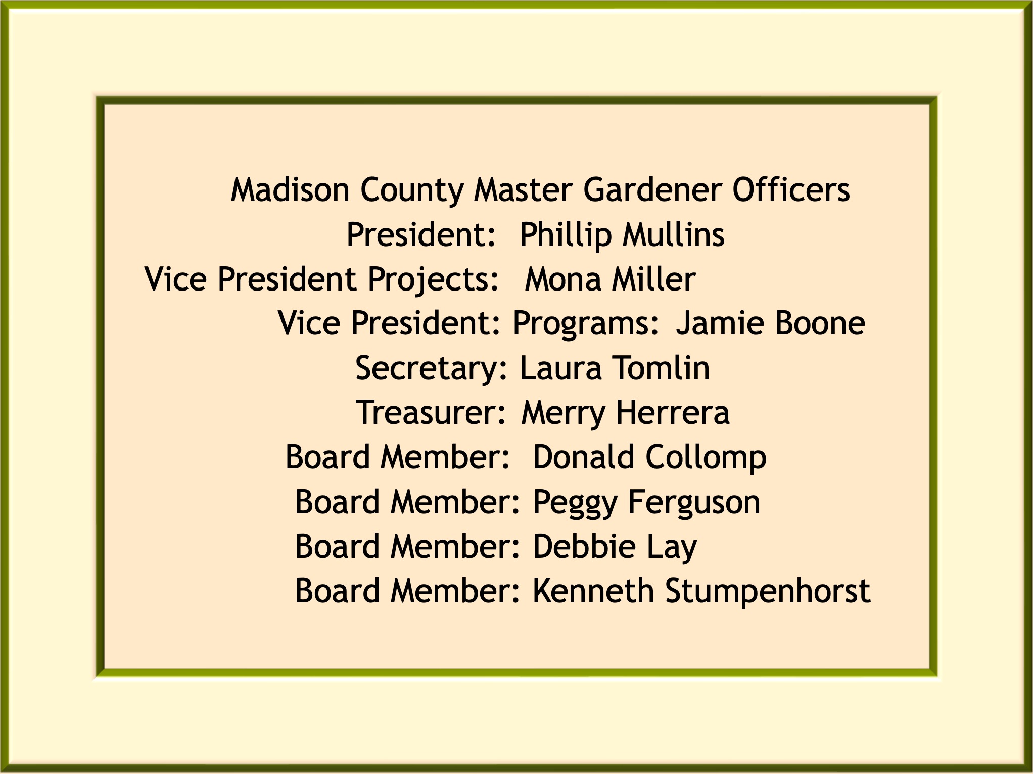 THANK YOU NOTES TO THE MADISON COUNTY MASTER GARDENERS