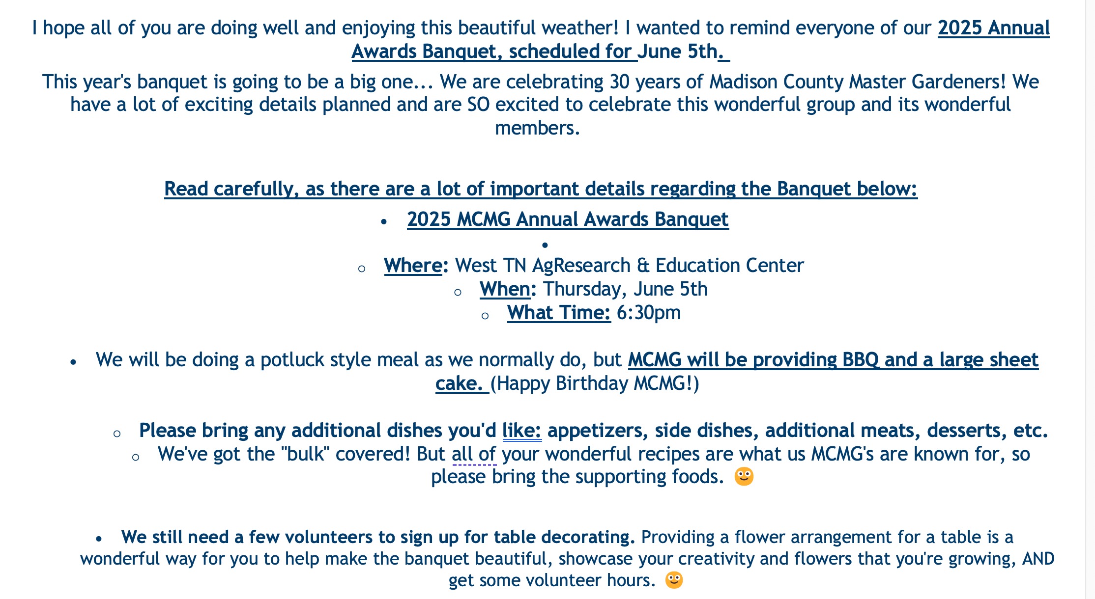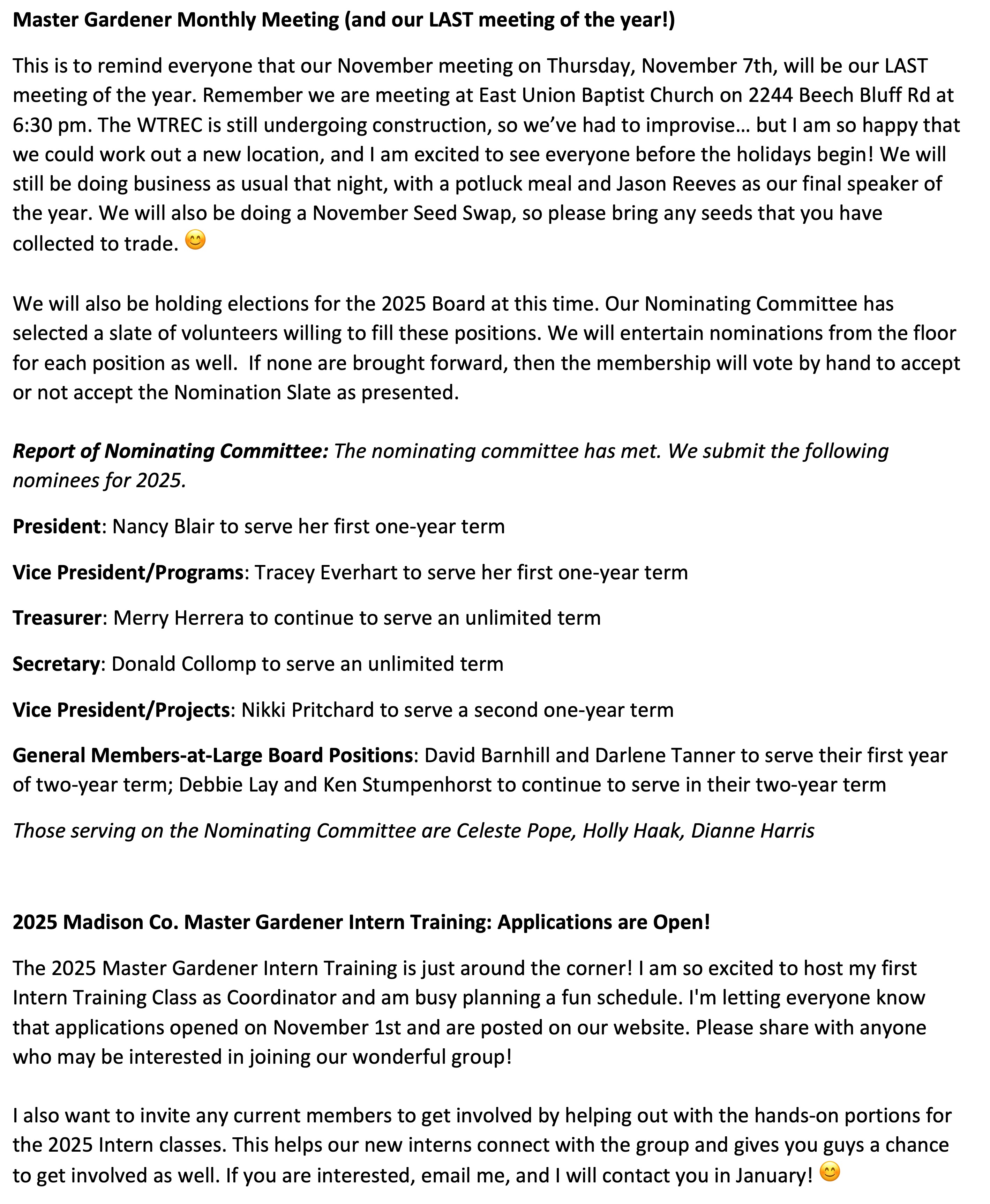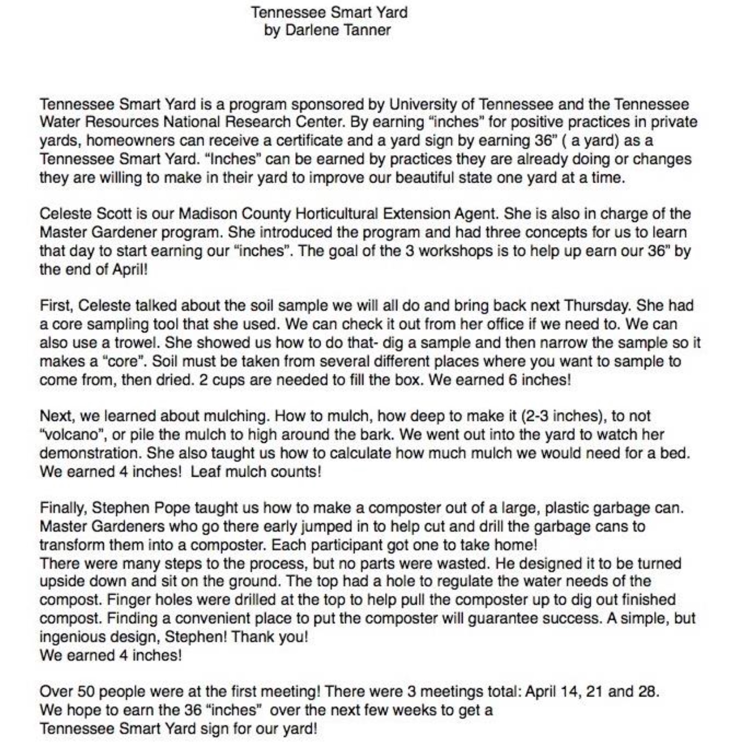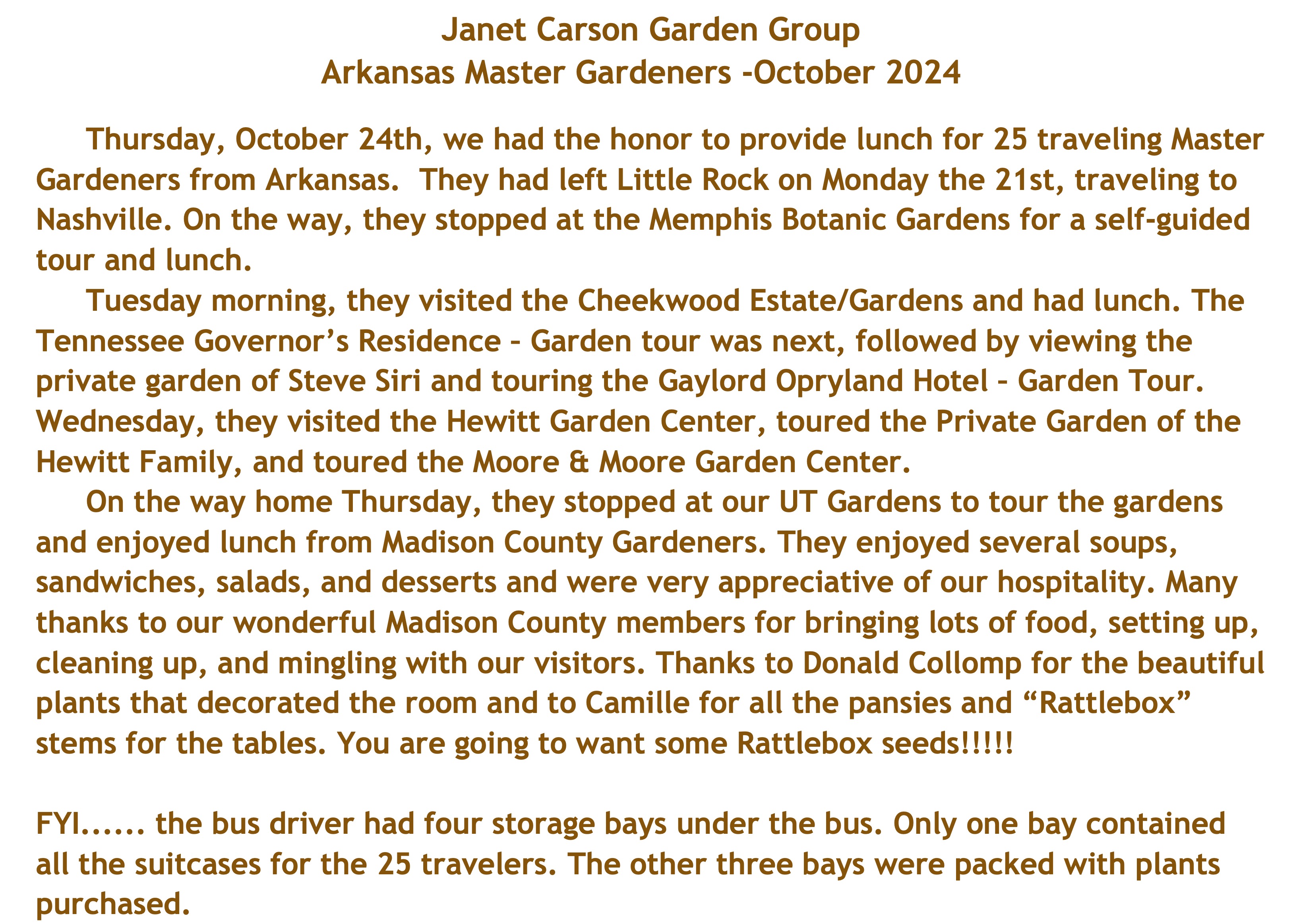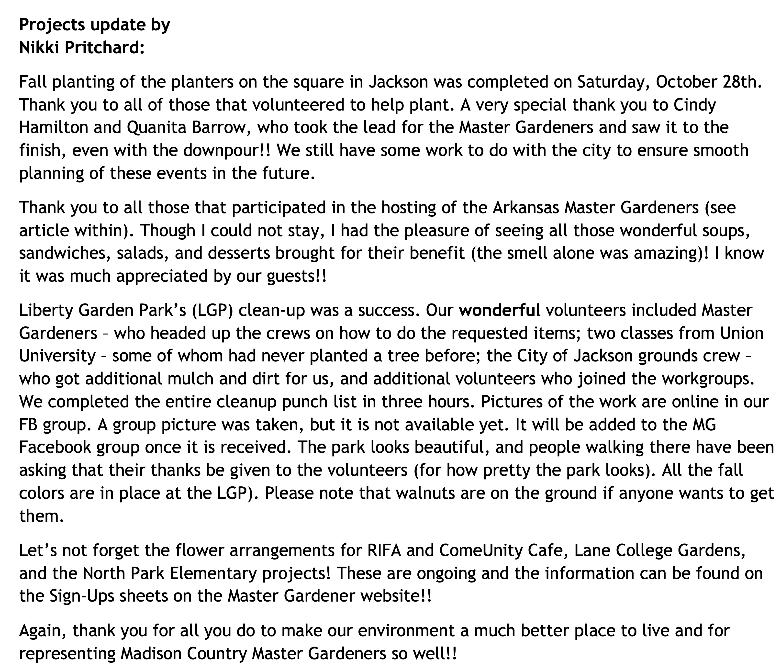 THANK YOU NOTES TO THE MADISON COUNTY MASTER GARDENERS