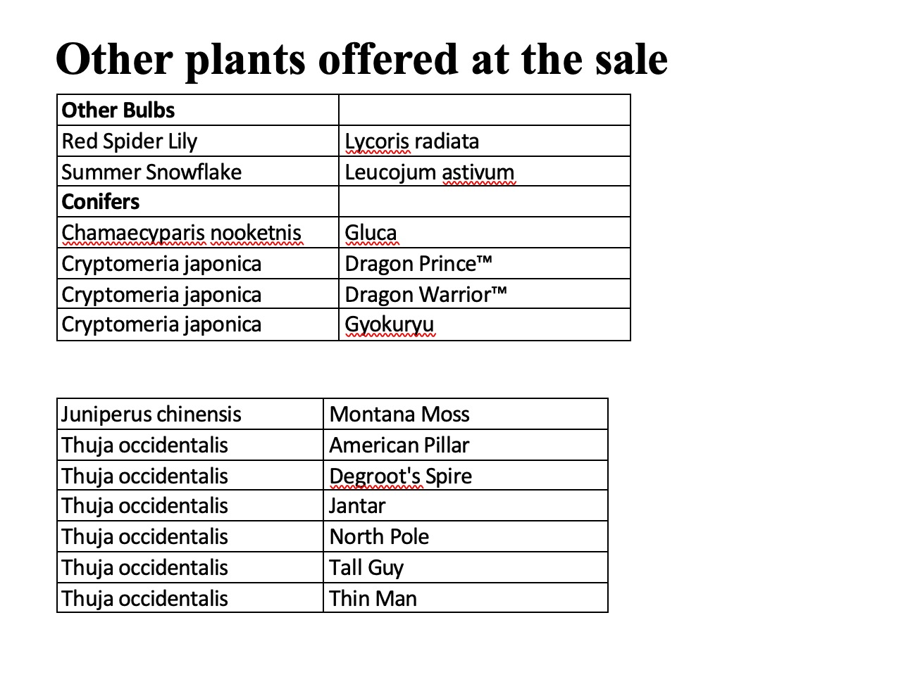 Over the past several years, we have been taking note of plants that fly off the shelves, which ones sell after an intercom plant introduction, and which tend to be slow movers even though they are valuable landscape plants. We have compiled this information in the table below, and hope that you can use this as a guide when planning your Plant Sale contributions.