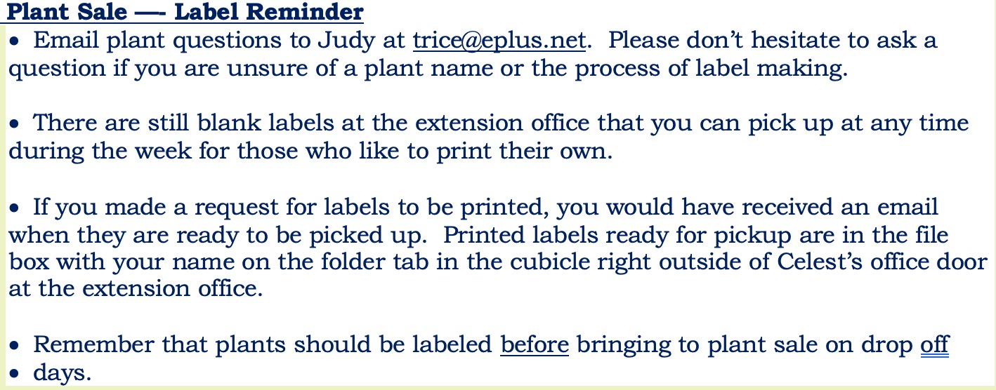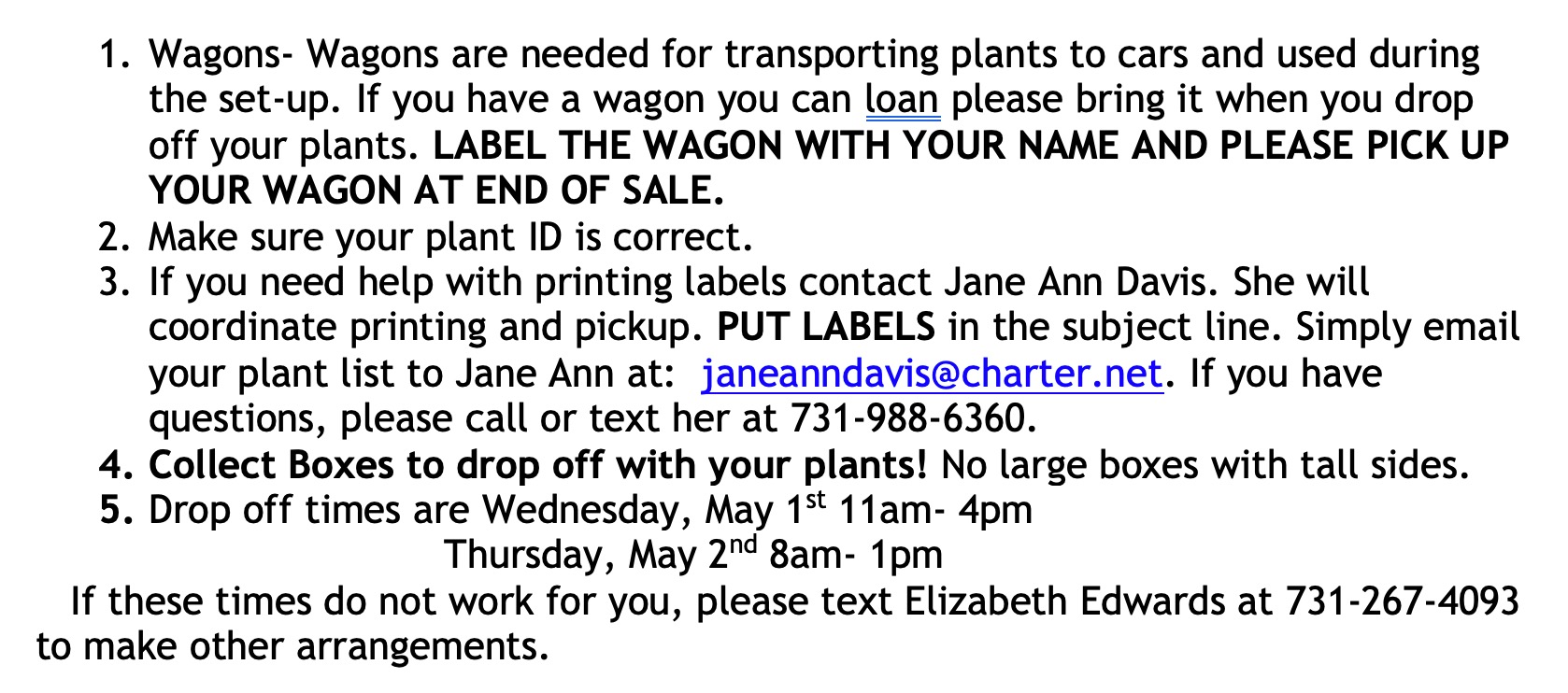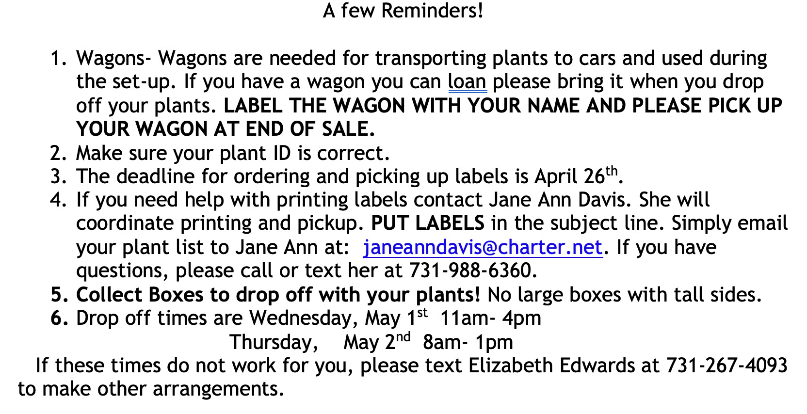 Overall, let’s make sure that the plants we contribute are of good quality, free of pests and disease, and are clearly labeled.