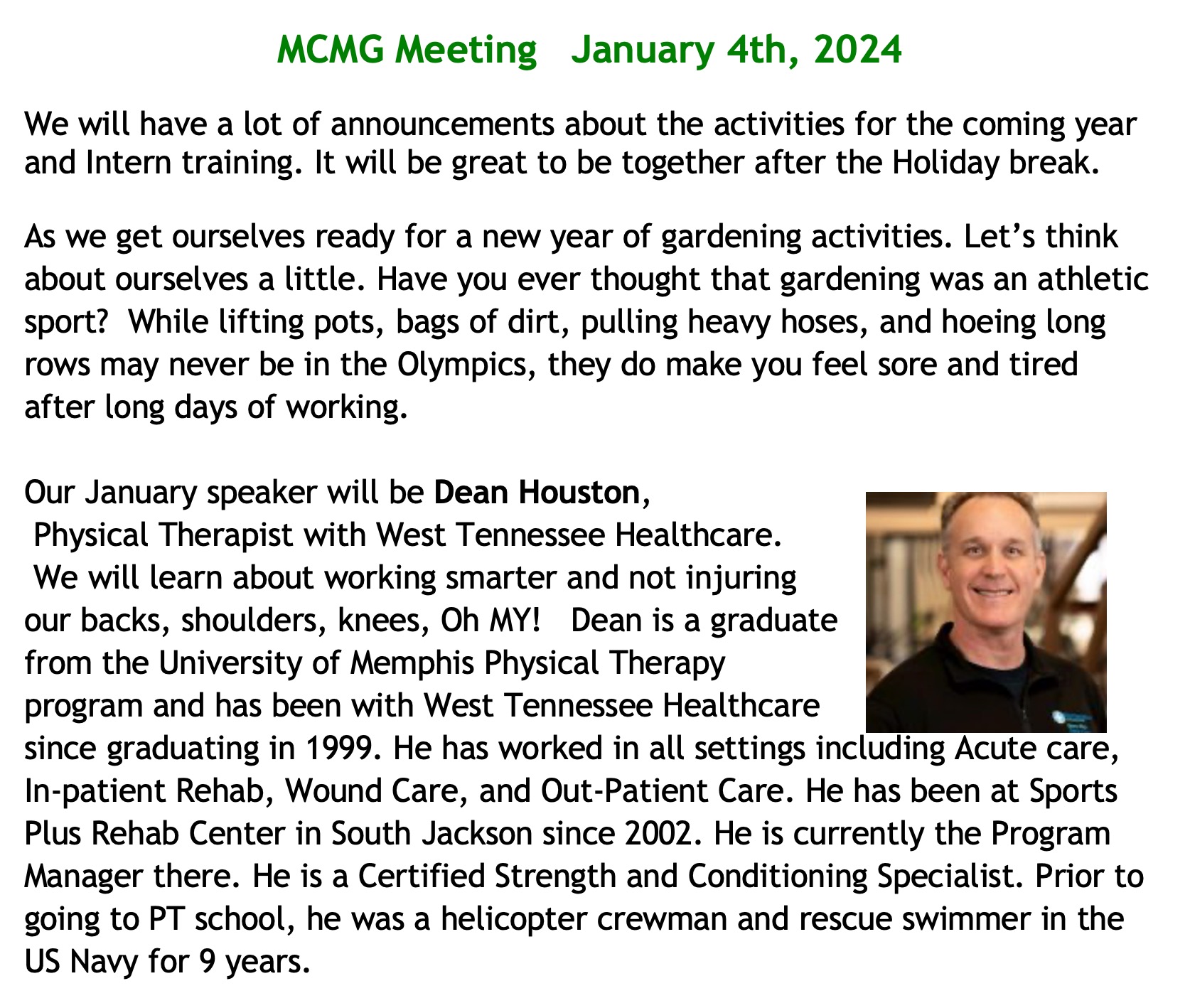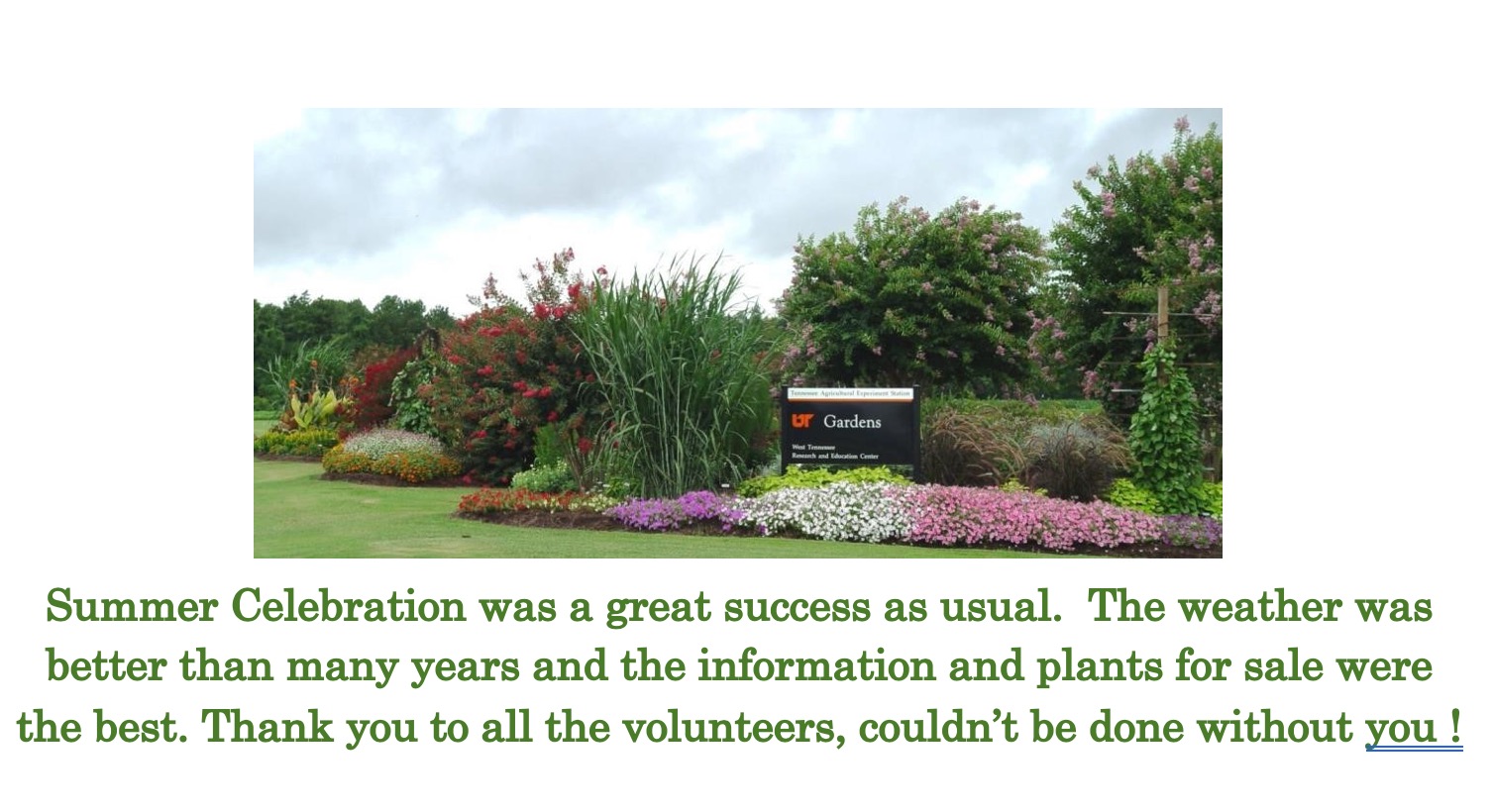 Casey Jones Festival - Master Gardeners provided information and sold some of our MG Cookbooks. These cookbooks are flying out of the boxes. We expect a complete sellout of the cookbooks. Congratulations to the entire team that worked on this project!! The team started in March of this year and has finished up the project with the distribution of books during November. Our members contributed over 450 recipes. Final totals for this extremely successful project should be available next month.