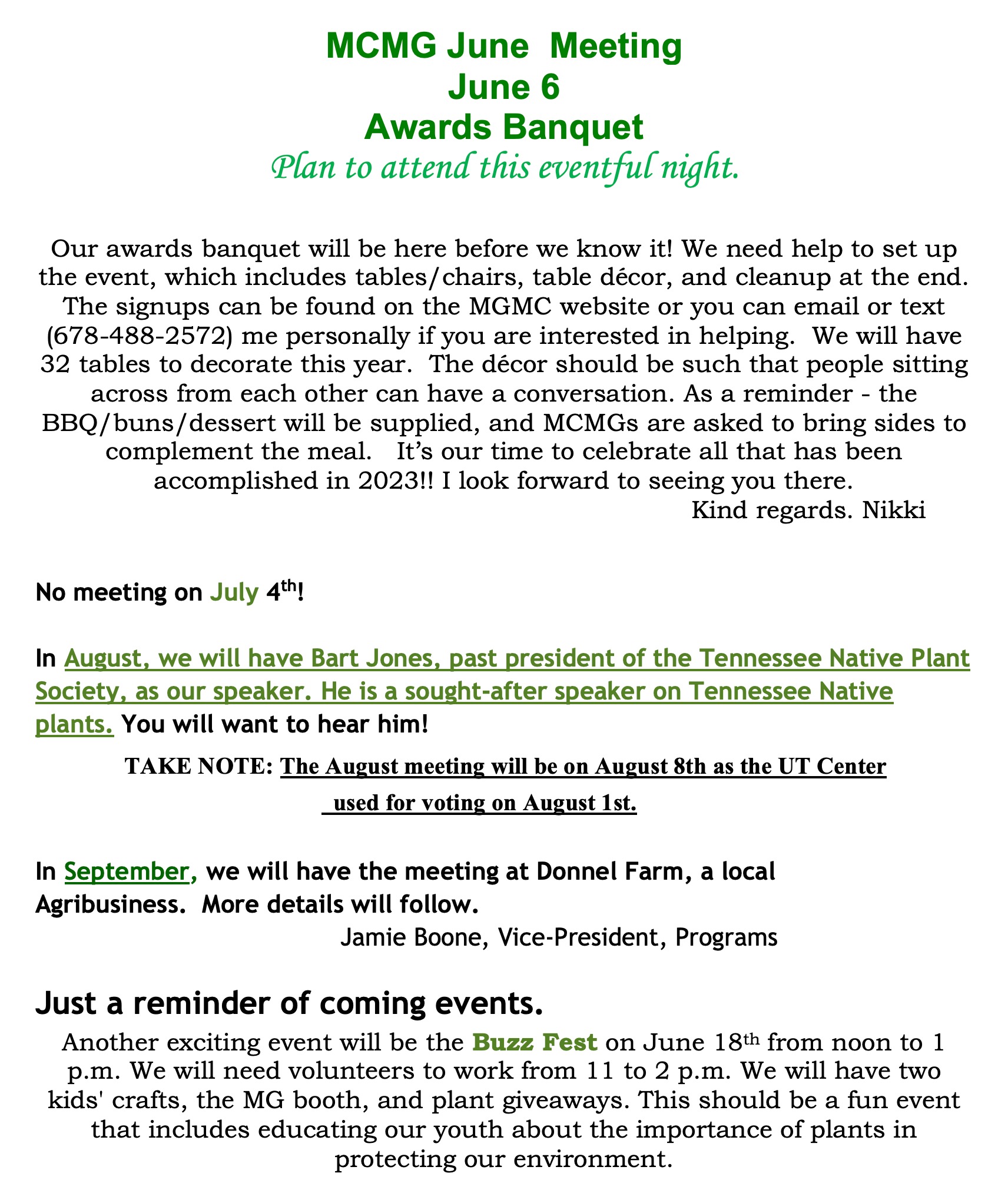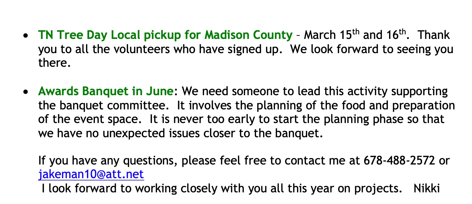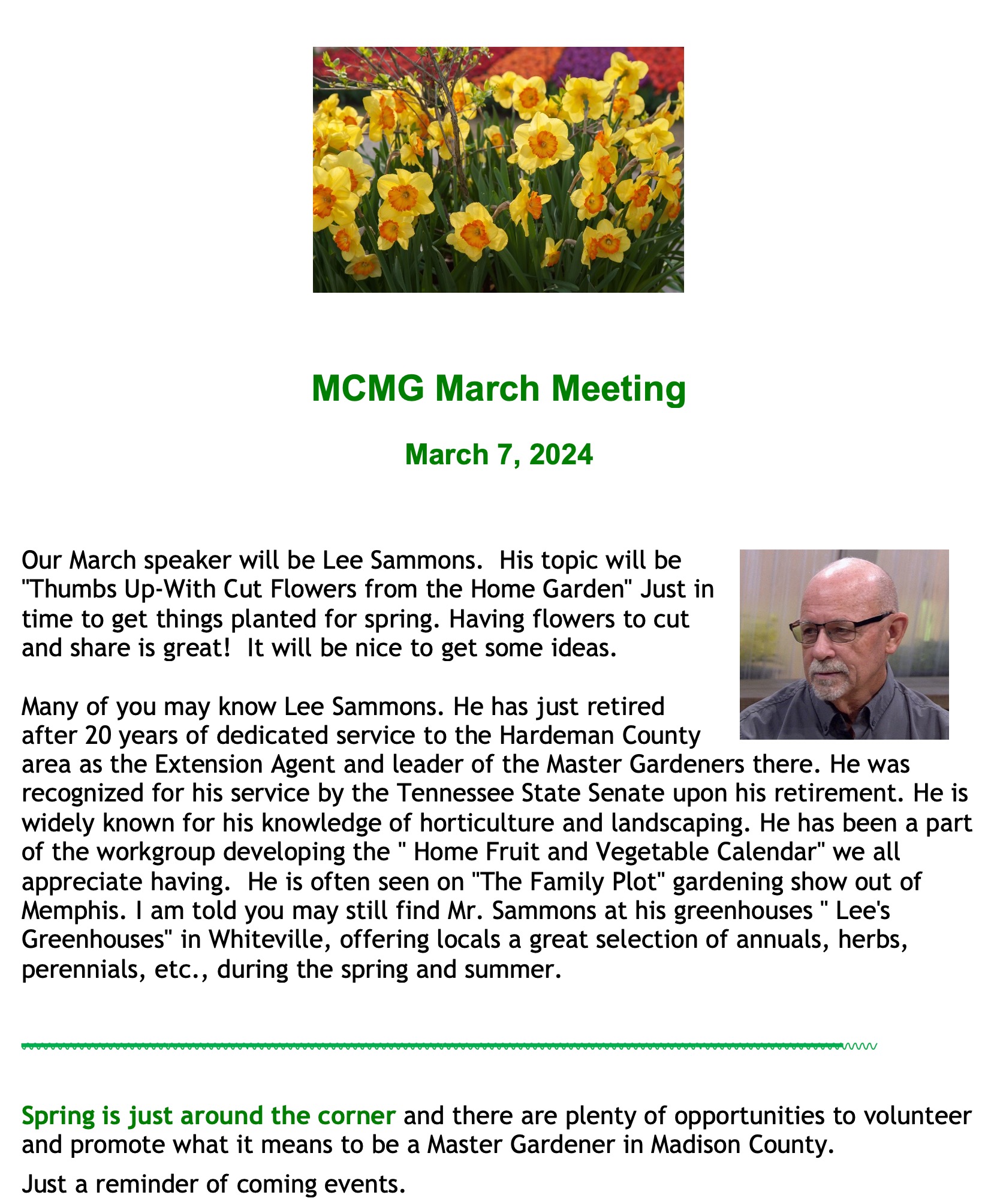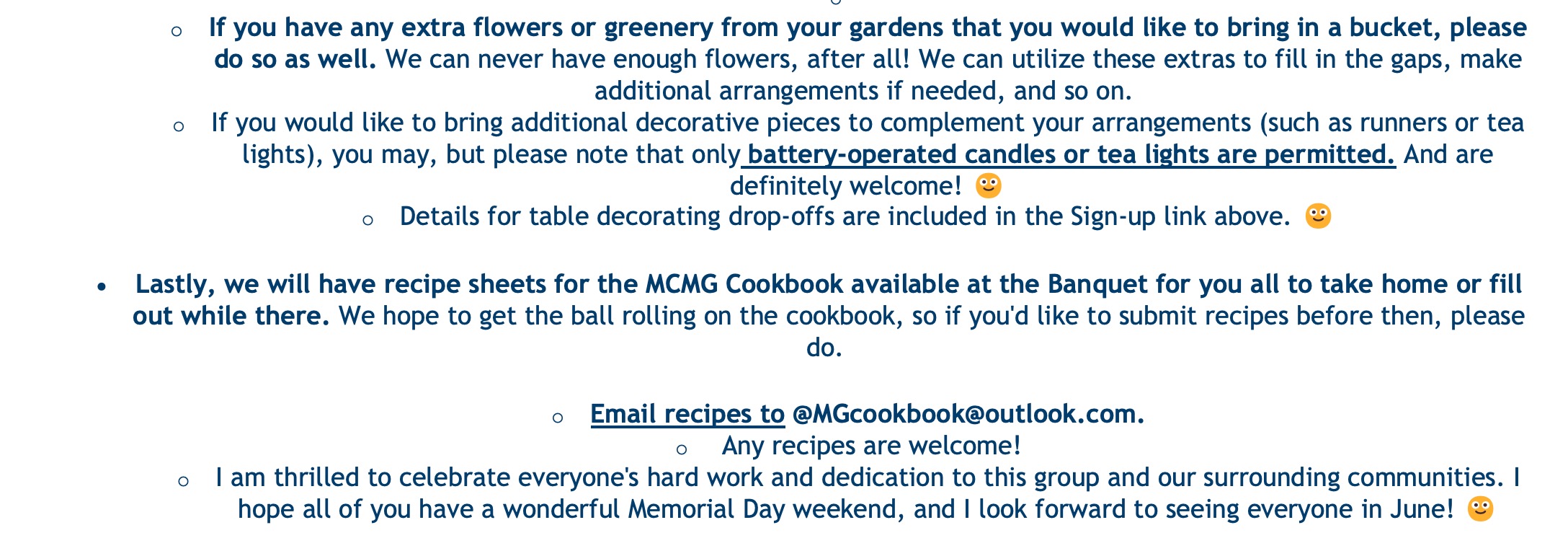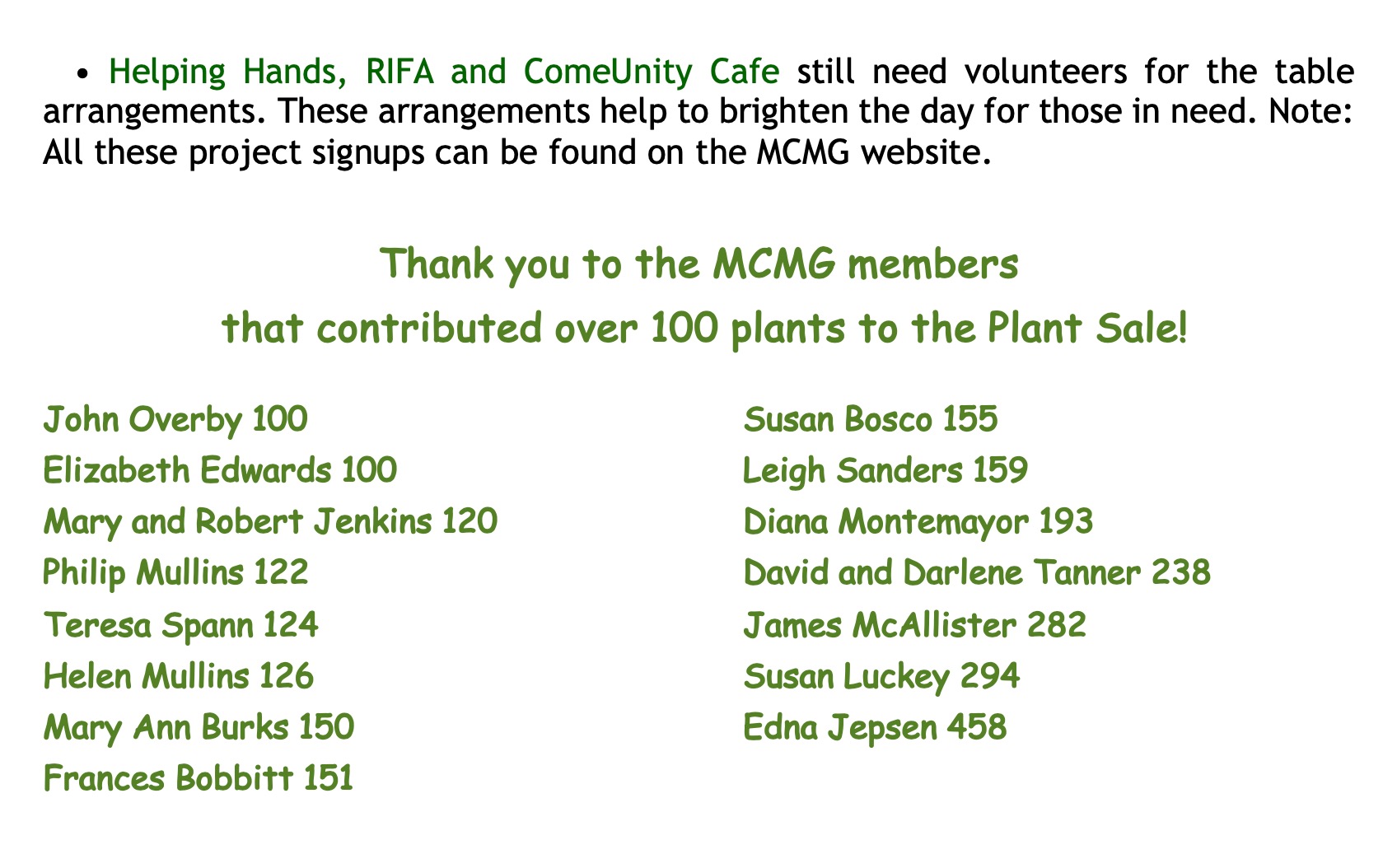As always, thank you for your generosity in giving your time to support the MCMG projects! You all provide a great example of what it means to be a United community for Madison County.