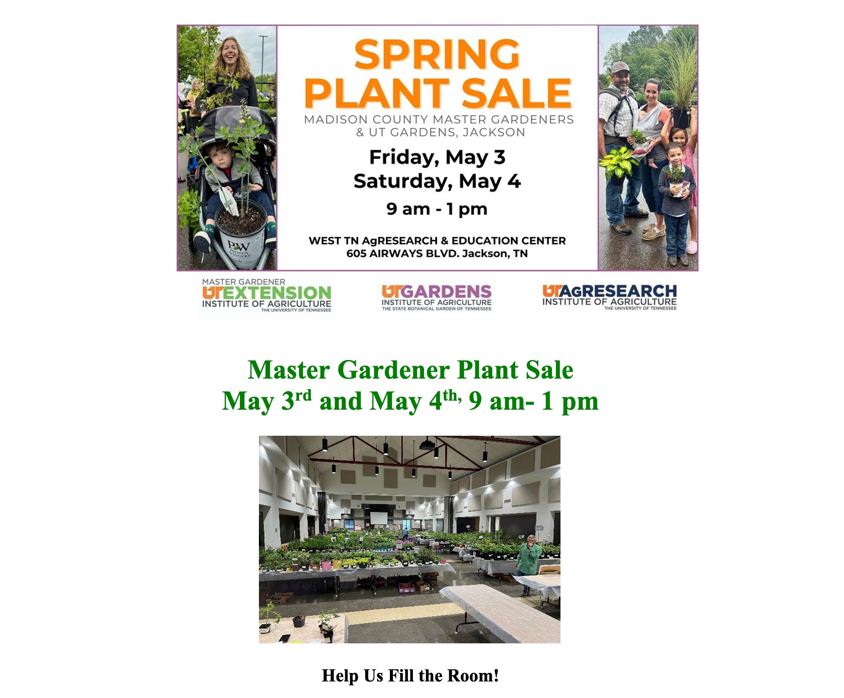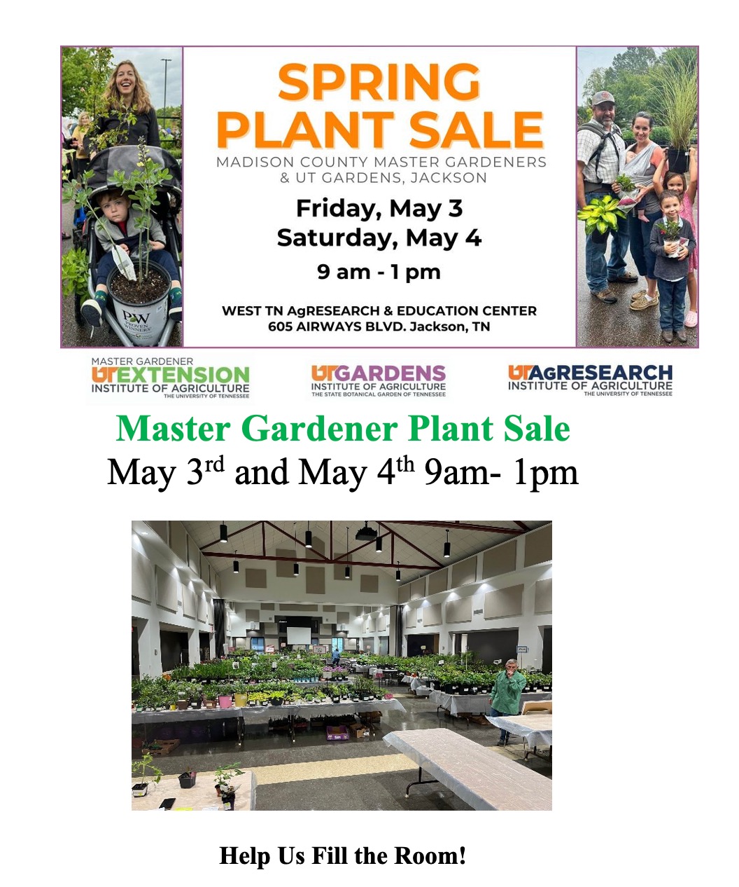 Due to COVID restrictions, our sale will look different this year and will be held over the course of three days at the West Tennessee Research and Education Center. On Thursday and Friday, April 29th and 30th, the sale will be held from 10:00 a.m. to 2:00 p.m. On Saturday, May 1st, the sale will begin at 7:00 a.m. and go until 11:00 a.m. Please help spread the word by sharing the sale information with friends and neighbors. Be sure to keep an eye on our Facebook page for more information along the way.