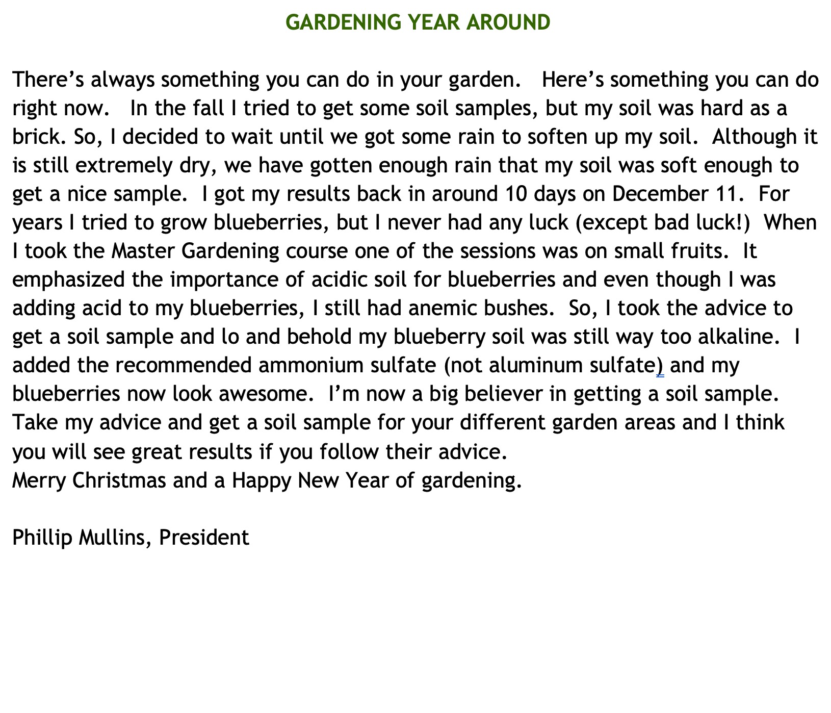 Hopefully, this will serve as a reminder to my gardening friends and myself that we should be aware that a new year brings new successes. But also brings new challenges to be safe so that we garden in comfort and suffer no ill effects from it.