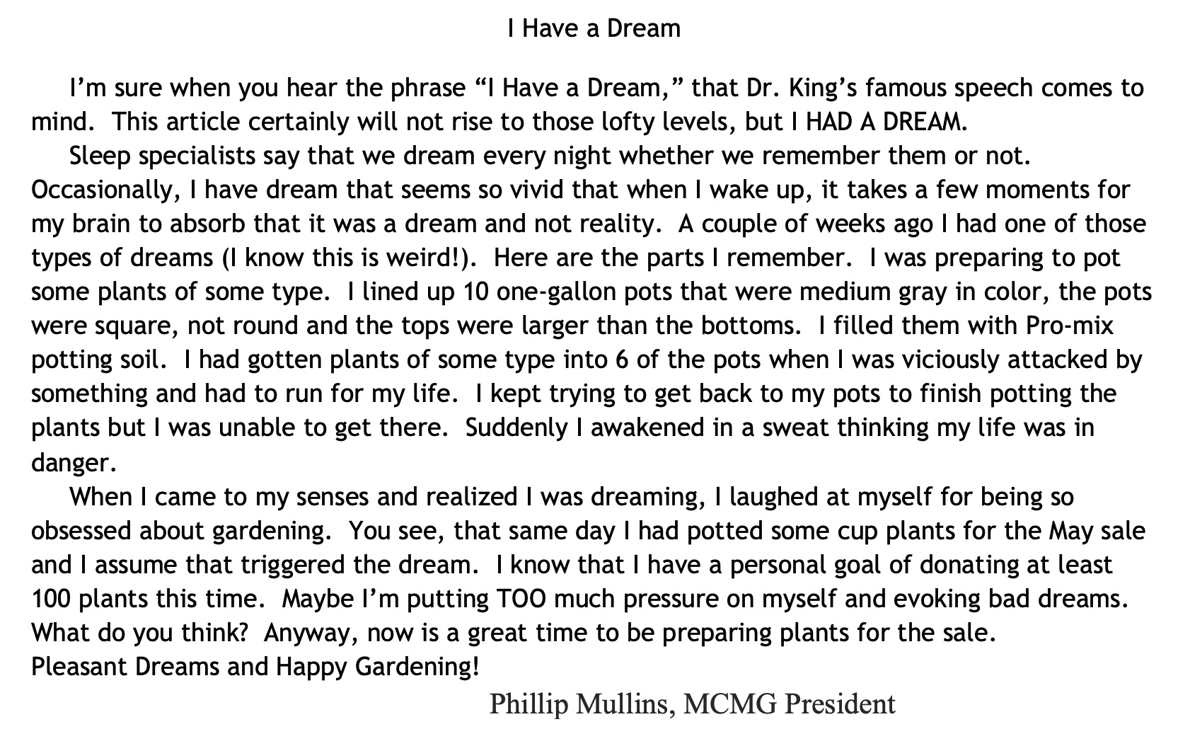 After our hiatus from much volunteer work in 2020, I have discovered that many of you have misplaced your MCMG name badge. Replacement name badges are for certified members and cost $10. If you find that you, too, need a name badge, please let me know. (If it has been more than a few weeks since you requested a replacement name badge, please refresh my memory J hahaha!!)